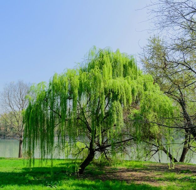 El sauce llorón (Salix babylonica) es un árbol ornamental de porte elegante, con largas ramas colgantes y hojas finas de color verde claro. Crece rápido y suele plantarse cerca del agua, donde aporta sombra y un aspecto sereno al paisaje.